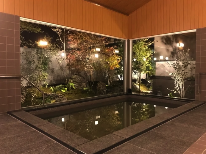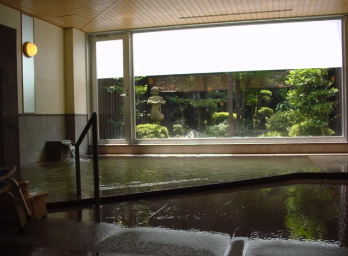 목욕탕은 정원을 바라볼 수 있는 대욕장이 있으며, 부지 내에서 솟아나는 자가 원천을 즐길 수 있다. 돗토리 온천의 원천을 마실 수 있는 유일한 숙소이니 꼭 한번 맛보길 바란다.