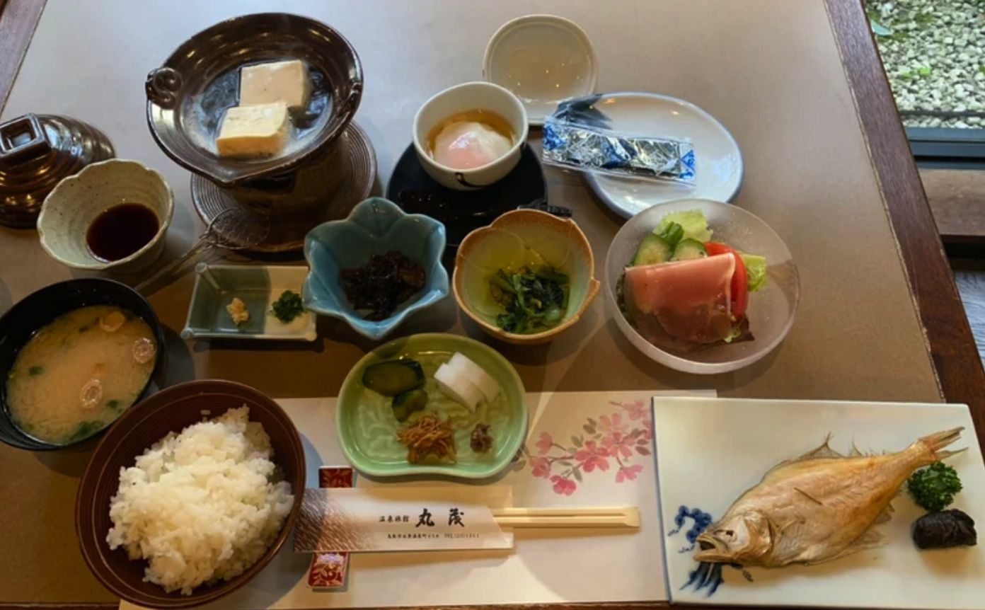 돗토리 방언으로 송어를 지게라고 하는데, 온센 료칸 마루모의 요리는 지게(송어)의 맛을 즐길 수 있다. 아침 식사로는 생선 건어물, 수제 두부, 돗토리의 야채를 사용한 여주인이 직접 만든 절임 등을 맛볼 수 있다.