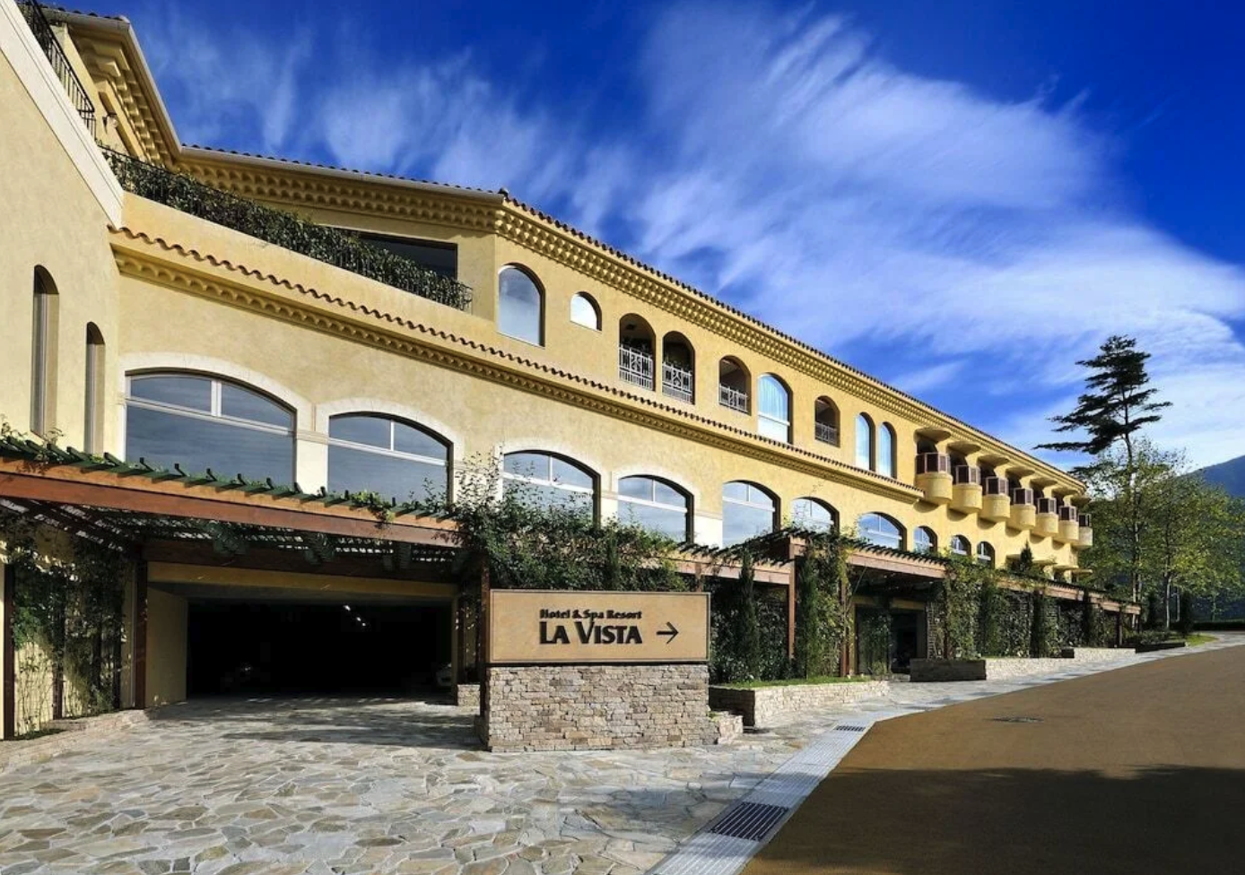 가와구치코에서 조금 산을 올라간 고지대에 있는 라 비스타 후지 가와구치코. 남프랑스의 휴양지 프로방스를 철저히 연구하여 지어진 호텔로, 프로방스의 요새를 이미지한 외관은 마치 일본이 아닌 것 같다.